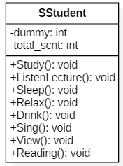 “강의받다.”, “잠자다.”, “휴식하다.”, “음료마시다.”, “노래하다.” 메서드도 같은 방법으로 구현하세요.