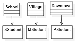 장소는 학생이 아닌 학생의 기반 형식인 사람을 보관하고 있어야 합니다. 학생을 보관하게 하는 것은 요구 조건에 약속한 행위 외에 다른 행위를 명령할 수 없다는 조건을 위배합니다. 그리고 학교는 IStudy, 주거지는 IRelax, 다운타운은 IPlay 형식에 명령을 내릴 수 있으니 직접 연관 관계로 표시합니다.