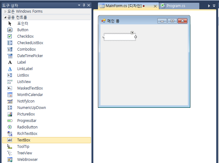그리고 도구 상자를 이용하여 자식 컨트롤을 쉽게 배치할 수 있습니다.
